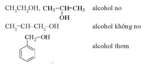 - Alcohol có nhóm hydroxyl mà liên kết với gốc hydrocarbon no thì được gọi là alcohol no, còn liên kết với gốc hydrocarbon không no thì chính là alcohol không no, còn với gốc hydrocarbon thơm thì gọi là alcohol thơm.