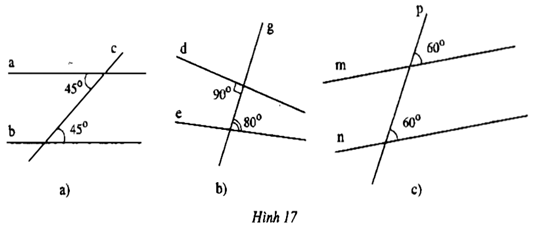 VD1: Xem hình 17 (a, b, c). Đoán xem các đường thẳng nào song song với nhau.