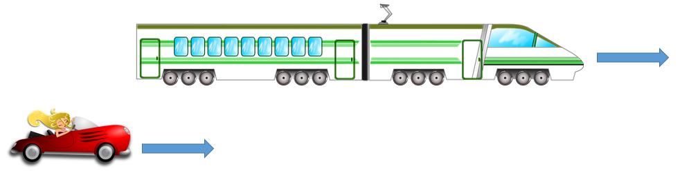 Ví dụ 4. Người lái xe ô tô đi với vận tốc 45km/giờ vượt qua xe lửa đi cùng chiều trong 50 giây. Xe lửa đi với vận tốc 36km/giờ. Tính chiều dài của xe lửa.