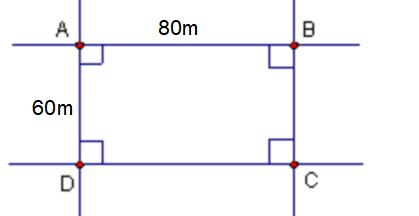 Câu 5(1đ): Một mảnh đất dạng hình chữ nhật ABCD có chiều dài và chiều rộng như hình 1. Hỏi một người muốn đi từ góc B đến góc D thì đi theo đường nào là ngắn nhất và độ dài đường đó là bao nhiêu mét?