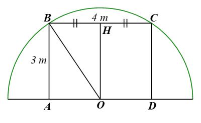 Giả sử ABCD là khung cổng hình chữ nhật (AB = CD = 3 m và AD = BC = 4 m) nội tiếp nửa đường tròn (O) (hình vẽ).