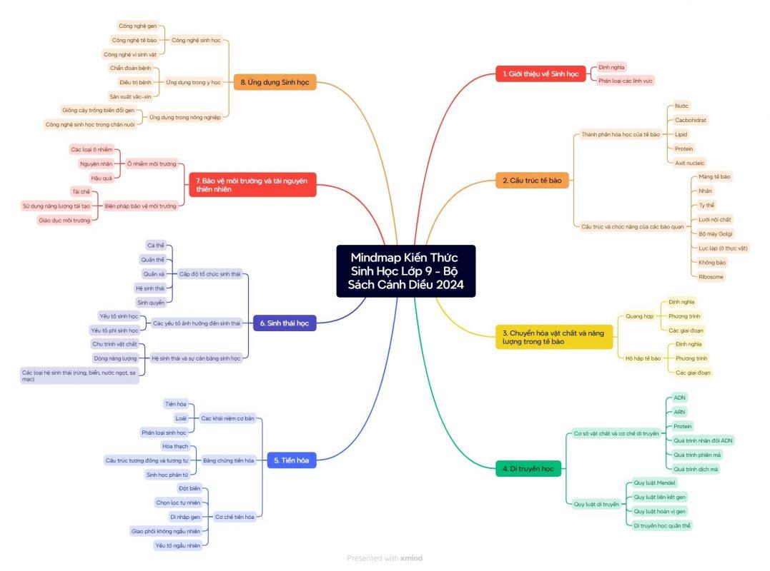 Ví dụ Cụ Thể: Đóng vai là giáo viên dạy Sinh học. Tổng hợp theo dạng sơ đồ mindmap về toàn bộ kiến thức Sinh học trong bộ sách Cánh Diều lớp 9 đổi mới năm 2024. Nội dụng được diễn giải dạng code của Mark down
