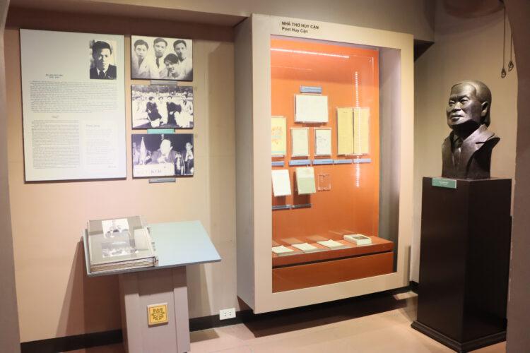 Ngoài cuốn “Lửa thiêng” thì trong không gian trưng bày về nhà thơ Huy Cận, khách tham quan còn thấy được nhiều hiện vật khác như cuốn: “Hai bàn tay em” in năm 1967; “Những năm 1960” in năm 1968; “Chiến trường gần chiến trường xa” in năm 1973, bài thơ “Ngậm ngùi” in trên báo Ngày nay số 161 năm 1939…