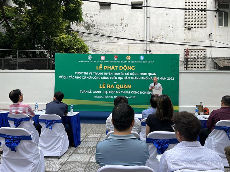 Sáng 7/10, Sở Văn hóa và Thể thao Hà Nội phối hợp với Thành đoàn Hà Nội, Trường Đại học Mỹ thuật công nghiệp phát động Cuộc thi vẽ tranh tuyên truyền cổ động trực quan về Quy tắc ứng xử nơi công cộng trên địa bàn thành phố Hà Nội năm 2022.
